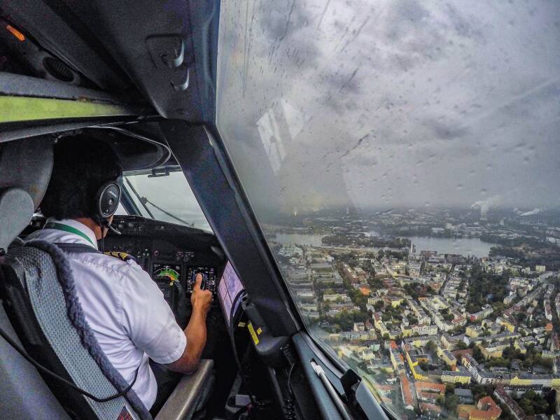 Spandau Water Ballet - Heavy rain during the approach to Berlin Tegel (TXL/EDDT). Passing over the Spandau borough on the banks of the Havel river. On the right at the waterfront, the Zitadelle Spandau, a fortress dating back to the 16th century.