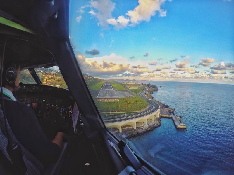 Funchal Final - Runway 05 at Aeroporto Internacional da Madeira Cristiano Ronaldo (FNC/LPMA). The circling approach over the Atlantic turning towards the island's steep green ridges is one of the most spectacular and challenging in the world. The runway itself has recently been extended and the end section is now partially built on large 70m tall supporting pillars, similar to constructions used in bridges. The airport has been renamed after one of the world's elite strikers in football: Real Madrid's superstar and Madeira native Cristiano Ronaldo.